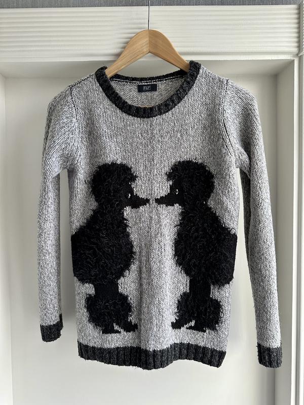 Свитер F&F серого цвета с декоративным узором в виде черных пуделей. Мягкий и комфортный, идеален для повседневной носки Cтан - идеальный Размер - S