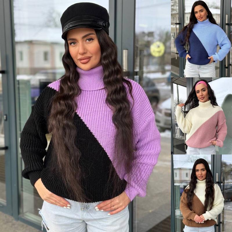 Светрик Модель 5044 Состав: 30% акрил; 70% шерсть🧶🐏 Размер: универсальный (44-50). Цвета: сирень с черным, голубой с синим; молоко с шоколадом, пудра с черным, пудра с белым, мята с зумрудом Цена 950 грн ____ для заказа писать: