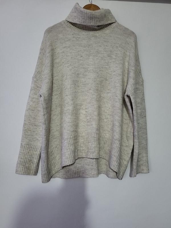 Свитер шерстяной, в составе есть альпака, теплый, оверсайз размер л, как оверсайз на с-л. Трендовая модель, удлиненный, сзади немного длиннее. Юрен WILLIAMRISE. Стан идеален.