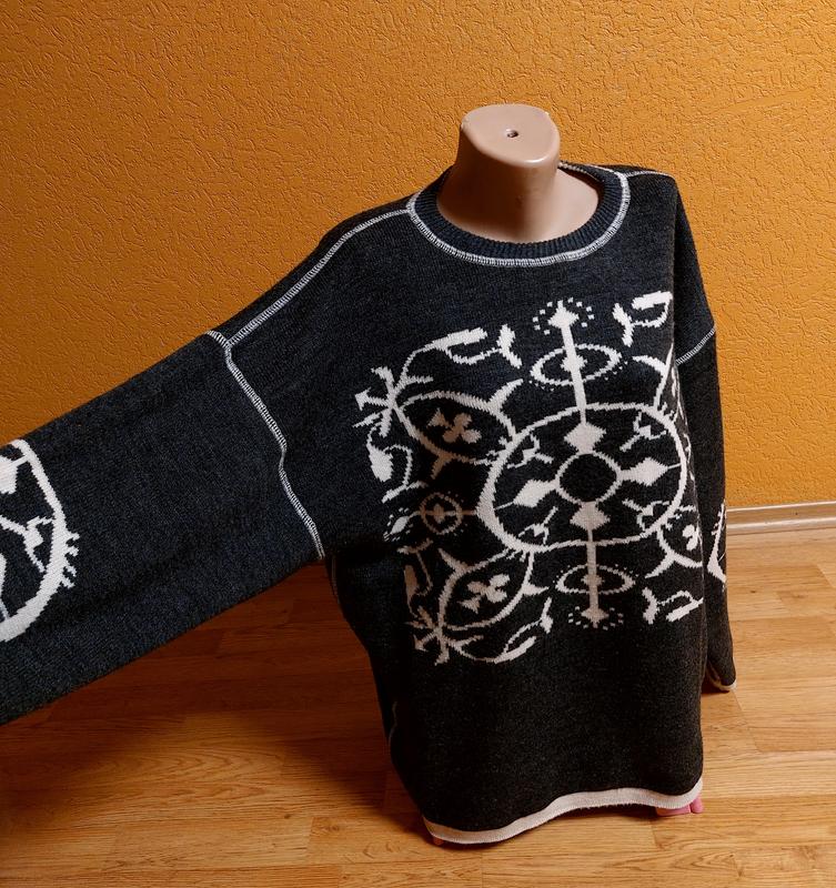 фирменный, очень тёплый, двойной , мягкий , приятный, состав шерсть с добавкой , модель оверсайз, одна сторона серо телесная,, вторая телесно серая , состояние идеальное, рукав от шеи 72. 5см, шов рукава опущен по модели, ширина по груди 63см,длина по спине от шва ворота по центру 68см