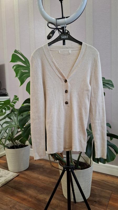 Базовий светр в рубчик H&M Розмір М ПОГ - 38 см ( добре тягнеться) Довжина - 61 см Низ - 36 см Плечі - 37 см Рукав - 61 см Склад тканини - 50 % котон, 33 % віскоза, 17 % поліамід