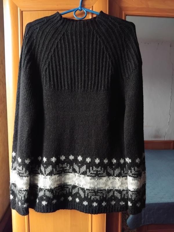 женский свитер с орнаментом,горловина стойка,состав 30% шерсть, размер указан Т1, подойдеет на М,стан идеален, как новый, является запасная ниточкa в пакетике, на фото видно дефектов нет.