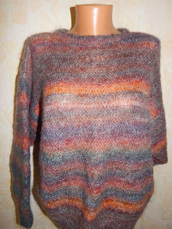 ПОГ 67-77см, рукав от горловины 74см, длина 64см, низ 45-57см. Кид мхер. Теплая, мягкая, пушистая, тонкая, свободная вязка, красивое сочетание цветов.