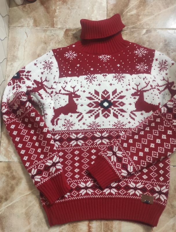 Новогодний свитер с оленями.Очень яркий, приятный на ощупь.