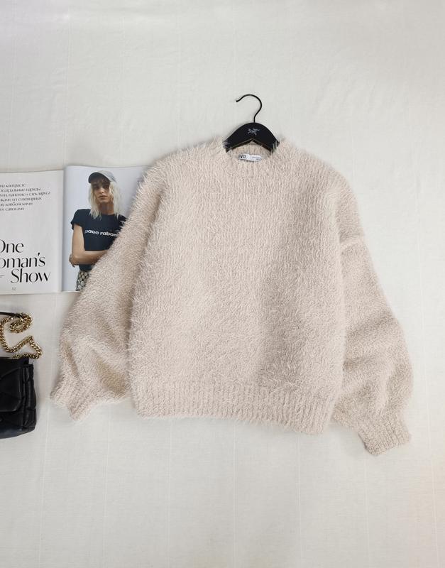 🌿кремовий светр від Zara крою оверсайз, м'який, приємний на дотик Розмір:М Заміри:ПО грудей 65 см, довжина 60 см, рукав від горловини 72 см