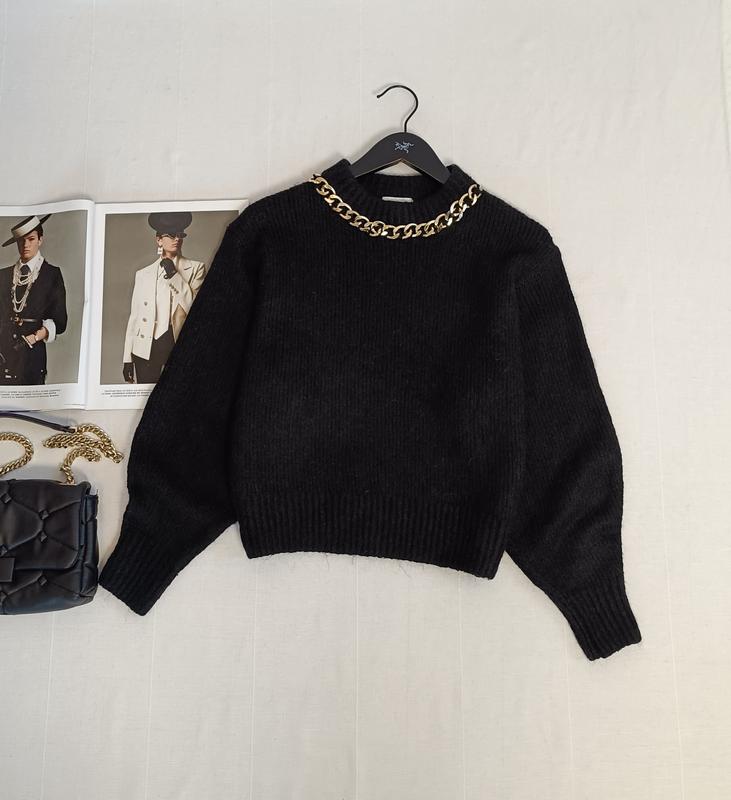 🌿черный свитер с цепочкой H&M свободного кроя с манжетами, ткань акрил, полиамид и 5% альпака Размер:S Замеры:ПО груди 51 см, длина 52 см, рукав от горловины 68 см
