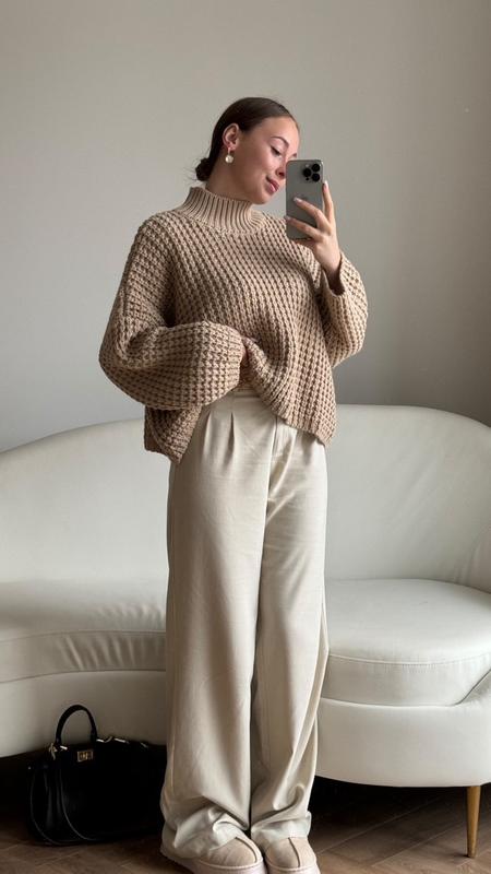 Уютные, шерстяные свитерики выполнены из грубой текстурной вязки🧸 Имеют высокий ребристый воротник, широкие, объемные рукава и идеальную длину. Мягкие и тепленькие словно облачко ☁️ Представлены в трех базовых цветах: серый, беж и молочный. Размер универсальный, подходит для S, M и L. Состав: 50% шерсть и 50% акрил Стоимость 1599 грн🌷