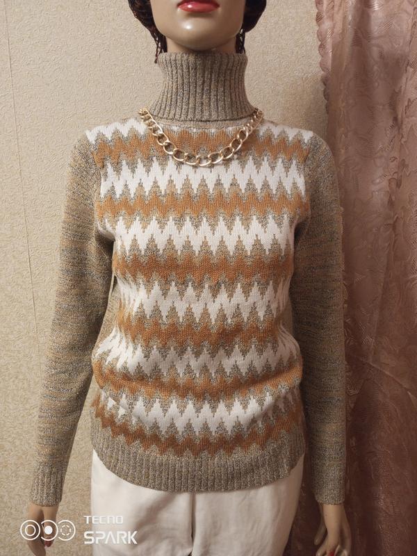 очень тёплый свитер с вискозной ниткой приятный к телу бирок нет, пог 44-46 см, длр 61 см, длина свитера 60 см, в очень хорошем состоянии.