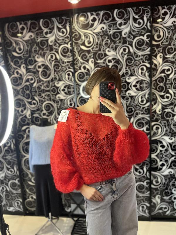 Великолепный, удобный, теплый, невесомый мирер.Оверсайз.Ручная работа, произведенный из мохера итальянского производства.Мохер с шелком.Цвет красный.Размер единый с/хл