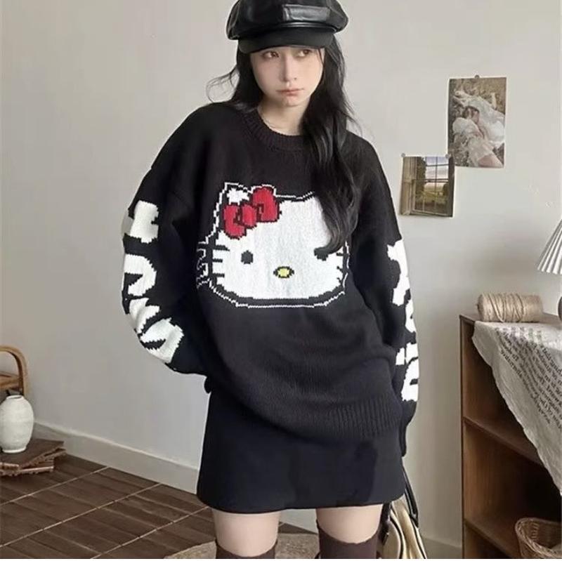 В наличии. Отличного качества . Свитер черный акрил принт Hello Kitty . Размер единый : грудь 112см, рукав от ворота 70см,длина 60 см . Пересылаю