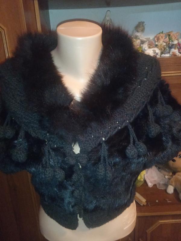 Светер женский в хорошем состоянии, верху нашит кожушек натуральный.е диффект, в середине затянутые нити на подкладке, на последнем фото видно. длина 46см. пол.обх. 47см. Смотрите другие Мои объявления,раз проводим акцию, по деталям пишите расскажет