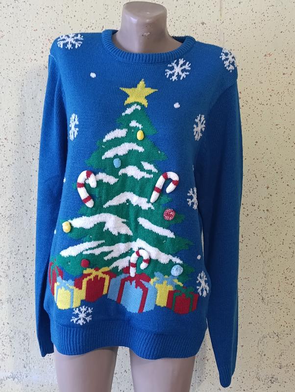 Состояние очень хорошее,только не светятся огоньки на елке, были малы. Пог 50 см Пот 49 см Рукав 67 см Длина 68 см Размер М