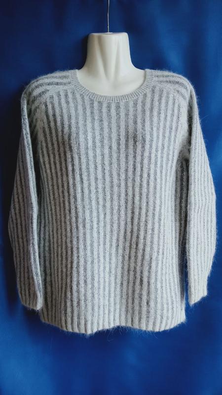 Женский пушистый свитер h&m angora blend реглан из ангоры в полоску рубчик джемпер