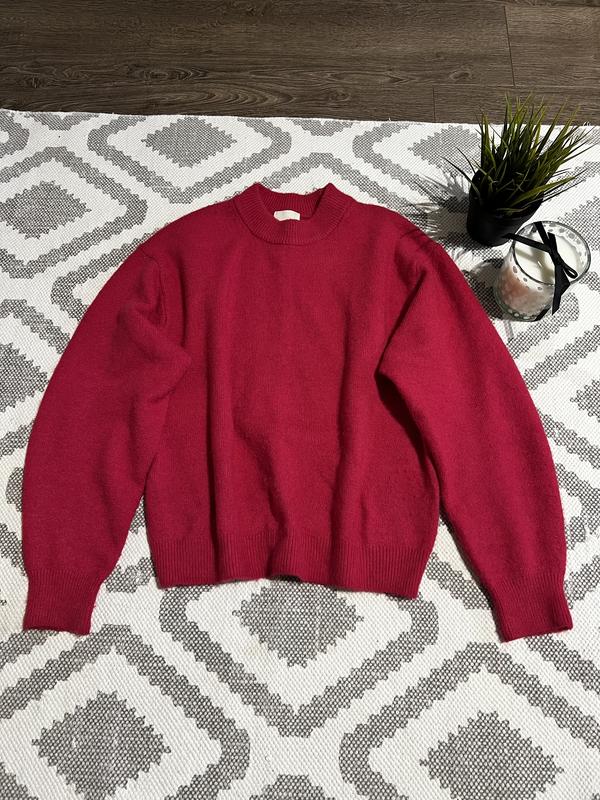 Светрик від бренду H&M насиченого малинового кольору. Дуже приємний до тіла, мягенький, з вмістом шерсті. Стан ідеальний. Розмір xs але підійде і на s. Довжина 55 Пог 50 Рукав від горловини 67