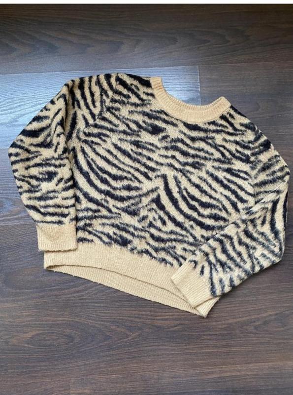 Актуальный свитер с животным принтом в идеальном состоянии. Замеры на фото.