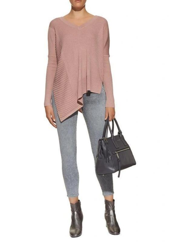Стильный пуловер бренда All Saints ассиметричного кроя. Удобный свободный силуэт с V-образным вырезом, длинными рукавами, разрезами по бокам. Размер: S ПОГ - 66 см. ПО внизу - 58 см. Плечо с рукавом - 74 см. Материал - 52% акрил, 24% шерсть, 14% альпака, 10% нейлон.