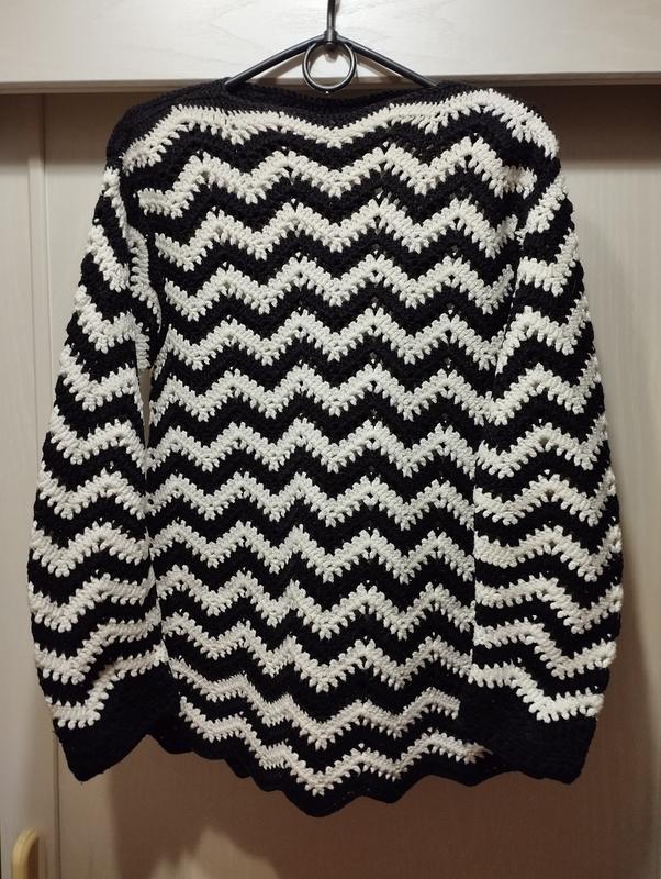Кофта связана крючком вручную. Воротник лодочка. Прямая. Тепла. Полушерсть. Ширина 50см длина 61см рукав от плеча 51см