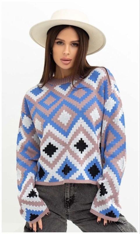 💫Этот яркий вязаный🧶 свитер станет настоящей изюминкой вашего гардероба💫! Благодаря геометрическому 🔸орнамента привлекает внимание и добавляет свежести любому образу😘. 🌸 Идеально подходит для прохладной осени или зимы. Мягкая ткань обеспечивает комфорт и уют в течение всего дня.🌸 🔹 Универсальный стиль: отлично сочетается с джинсами, брюками или юбками. 🔹 Качественная вязка: устойчива к износу и долго сохраняет форму. 🔹 Доступна в разных размерах. Теплый вязаный 🧶 свитер в этно-стиле " Лайт" 🔺 Материал: Вязаный трикотаж 🔺 Страна производитель Украина 💙💛 🔺 Размер oversize 42-48 🔺 Состав пряжи 50% шерсть,50% акрил 🔺 Сезон Зима, Весна, Осень Замеры: Ширина по грудях 51см Длина по спинке 53см Длина рукава от горловины 71см