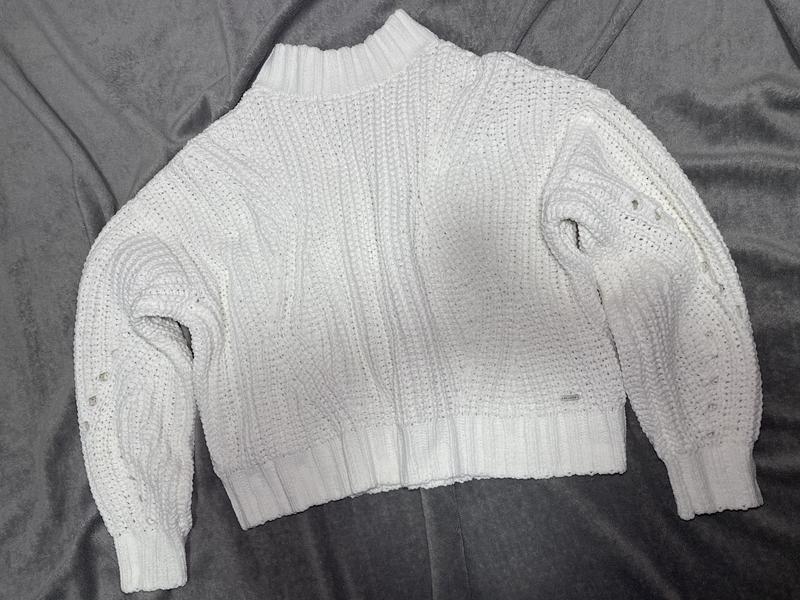 Вживаний светр білого кольору бренду HOLLISTER в розмірі XS. Пів обхват грудей - 60 см Довжина светра - 48 см