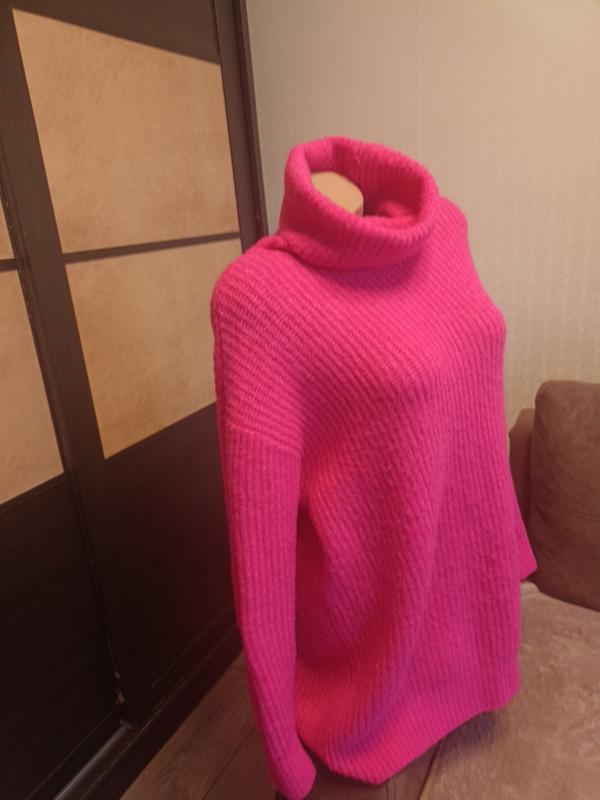 насыщенная малина, теплый, не толстый,гарное качество, размер на бирке s, но можно до3хл