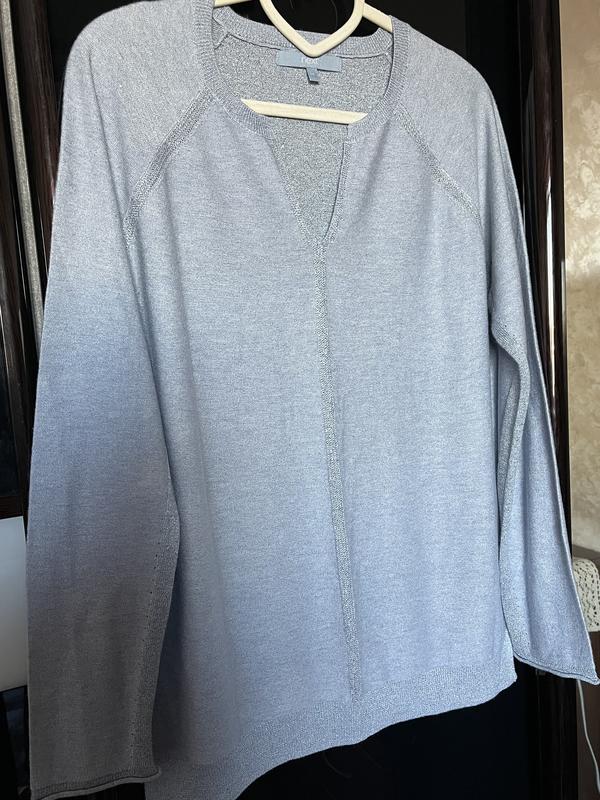 Светр ошатний бренду Next. В складі полотна є вовна ,приємний до тіла. Виглядає ефектно за рахунок люрексовоі нитки ледь помітної . Розмір вказаний 14. Пог 52см,тягнеться до 58см,довжина 65см , довжина рукава від горловини 70см. Стан новий без бум.бірки.