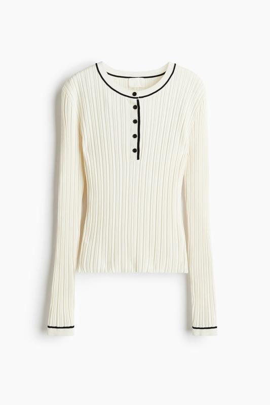 Цена 1380 Трикотажный верх из смеси вискозы в рубчик с контрастной отделкой. Приталенная модель с круглым вырезом в рубчик, планкой на пуговицах и длинными рукавами с манжетами в рубчик. Артикул: 1270220001