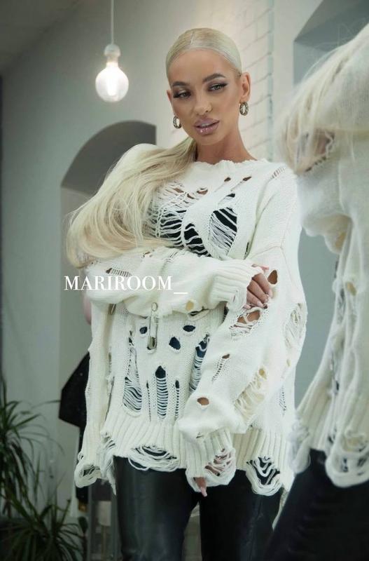 NEW NEW NEW 👆Ефектний рваний светр з матовими срібними Нитка бавовна Кольори : молочний, чорний ЯКІСТЬ ЛЮКС🫶