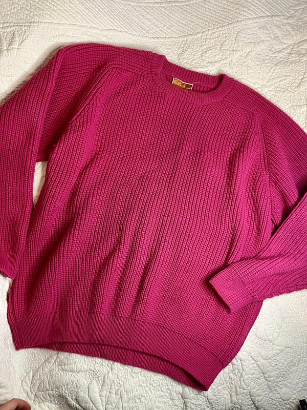 довжина від горловини 70, довжина рукава від горловини 77, ширина 67. Можна створити гарний образ повсякденний за рахунок светра та зробити його акцентованим в образі.