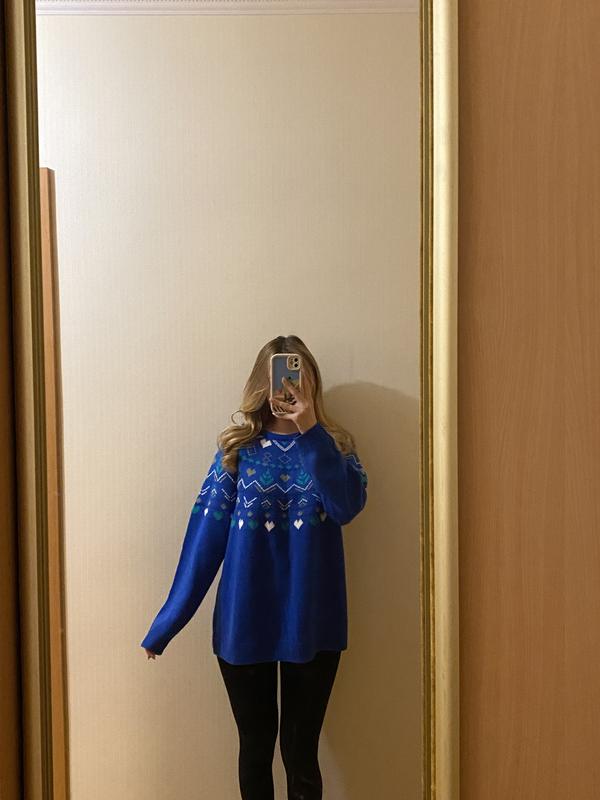 Тепла кофта з норвезьким орнаментом Стан: відмінний, без пошкоджень та дефектів Розмір Л, але також можна як оверсайз на S-M Матеріал: 100% поліакрил Додатково: мій зріст 162 см, розмір S