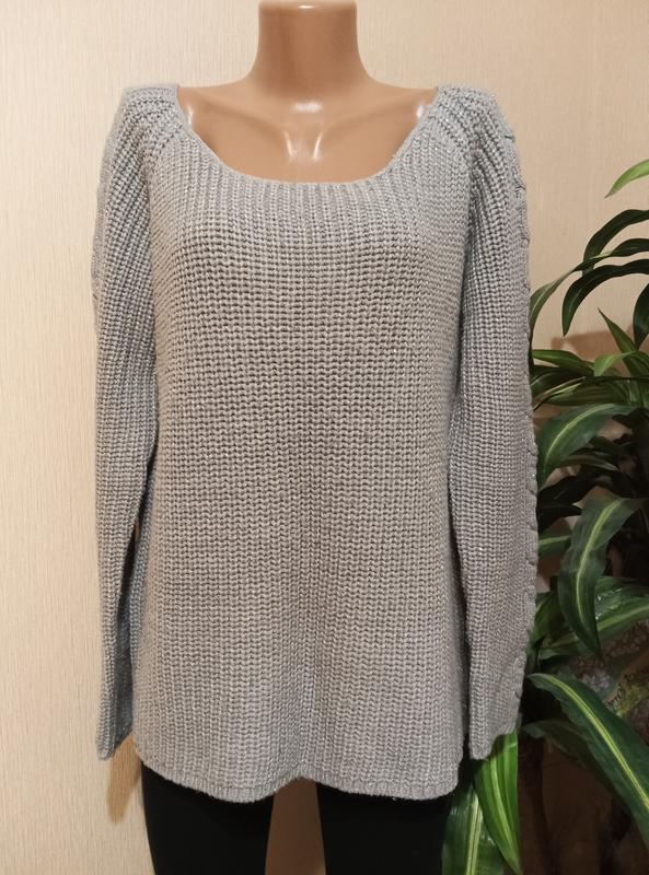 Стильная кофта в идеальном состоянии. Красивый серый цвет с люрексовой нитью, сбоку на рукавах узор косичка. Снизу по бокам имеет маленькие замочки. Мягкая и удобная. ПОГ-60см ПОТ-60см ПО по низу-60см Длина кофты-65см Длина рукава от шеи-70см