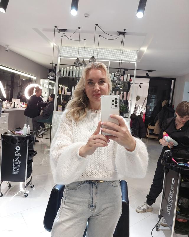 Очень качественные свитерики ручной работы, теплые, легкие и очень женственно выглядят в образе. Есть две модели – это свитер и кардиган на пуговицах.