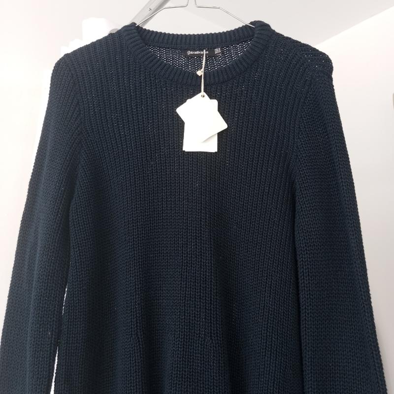 Новый, удобный свитер Stradivarius. Качественный. 100% котон. Размер М. Цвет: темно синий. Высота по центру спины: 65 ПОГ: 49см, хорошо растягивается. Рукава от горловины: 78см.