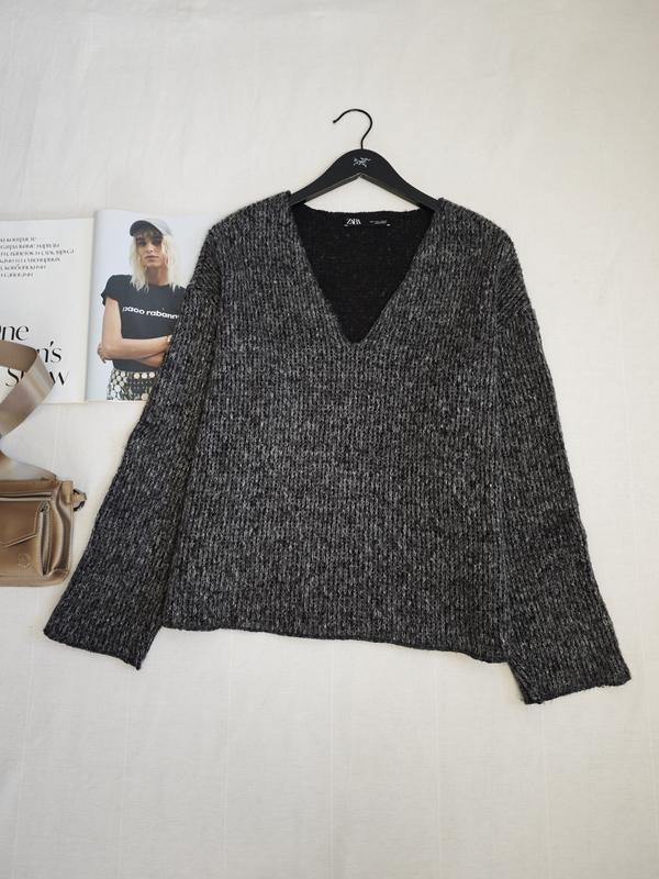 🌿серый свитер от Zara свободного кроя, ткань акрил, полиэстр и нейлон Размер:L Замеры:ПО груди 60 см, длина 60 см, рукав от горловины 73 см