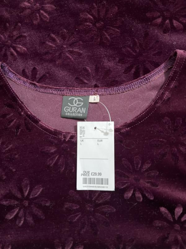 В наличии красивая кофточка фирмы GURAN Collection. Размер указан L, по замерам идёт на 18. Состав: 100% полиестер ..ткань похожа на велюр, очень мягкая и приятная к телу, хорошо тянется. ПОГ-60+ещё тянется, длина-73, плечи немного приспущены-47, длина рукава-52, ширина по низу-60+ещё хорошо тянется.