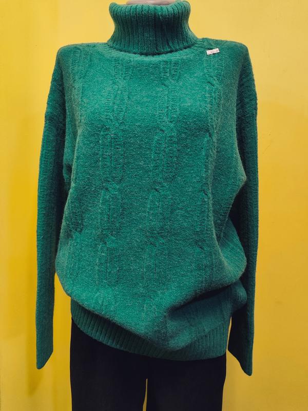 Теплий, щільний, якісний Фабрика Китаю Модель середньої довжини, має занижене плече. Вовна/акрил Кольор: смарагд Довжина виробу 62 см НОГ 53 см Довжина рукава від шиї 70 см