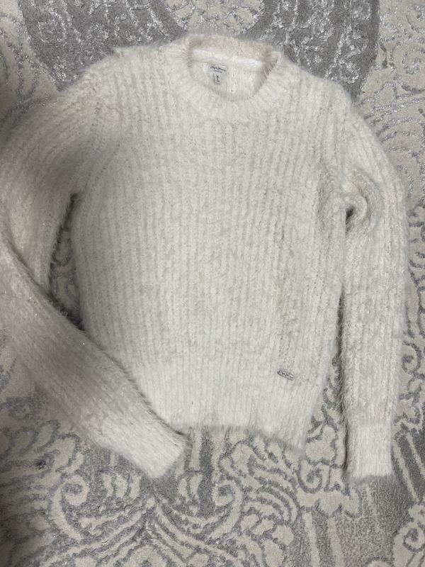 Теплий,приємний на дотик светр. Розмір с. Масляного кольору з золотистою ниткою.