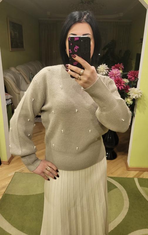 Кашемировый свитер украшен жемчугом. Очень красивый и теплый. Размер один подходит на 42 - 46, Ог от 90 до 105 см, длина 60 см