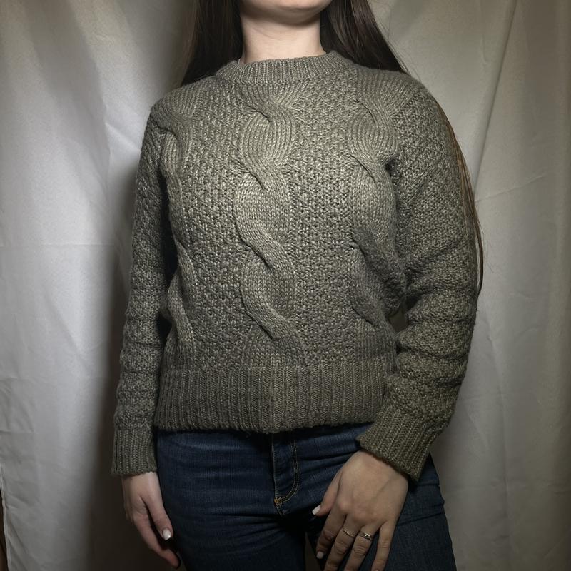 Теплый вязаный свечер размера xs, легко тянется на размер s. Цвет Хаки