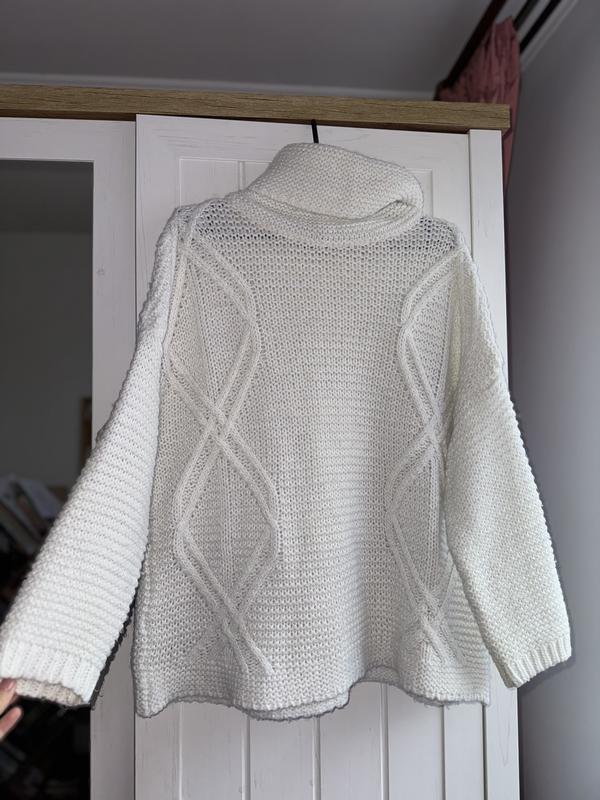 Теплий светр білого кольору з срібними вкрапленнями