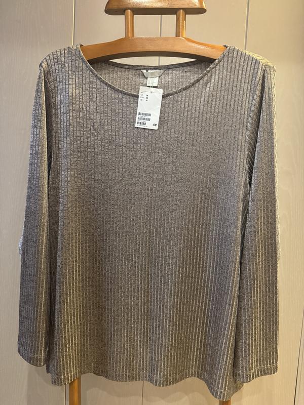 У наявності гарна кофточка фірми H&M. Розмір вказаний XL. за замірами більше йде на 16/18. Склад: 95% поліестер і 5% еластану.тканина дуже м'яка та приємна до тіла, добре тягнеться. НОГ-58+щі добре тягнеться до 80, довжина-70, плечі-44, довжина рукава-61, ширина по низу-60 + що добре тягнеться.