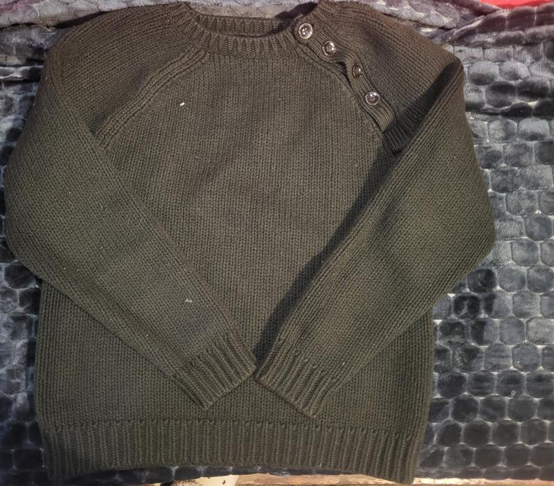 Свитер Ralph Lauren темно-зеленого цвета. На наборе указан размер XL. Состав - 100% шерсть мериноса. Свитер в красивом состоянии, но есть нюансы с пуговицами. Замеры: ширина 50 см, высота 60 см, рукава ( от плеч ) 70 см, горловина 20 см.