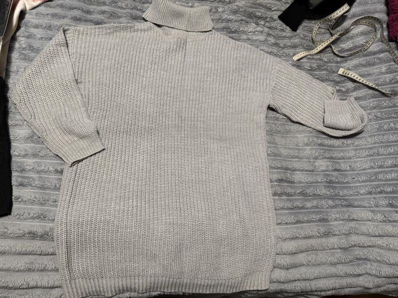 Продам платье свитер светло серого цвета, вязка, высокая горловина, размер м, замеры на фото