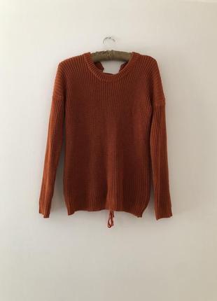 Крупная вязка, модная шнуровка, терракотовый цвет, модный свитер