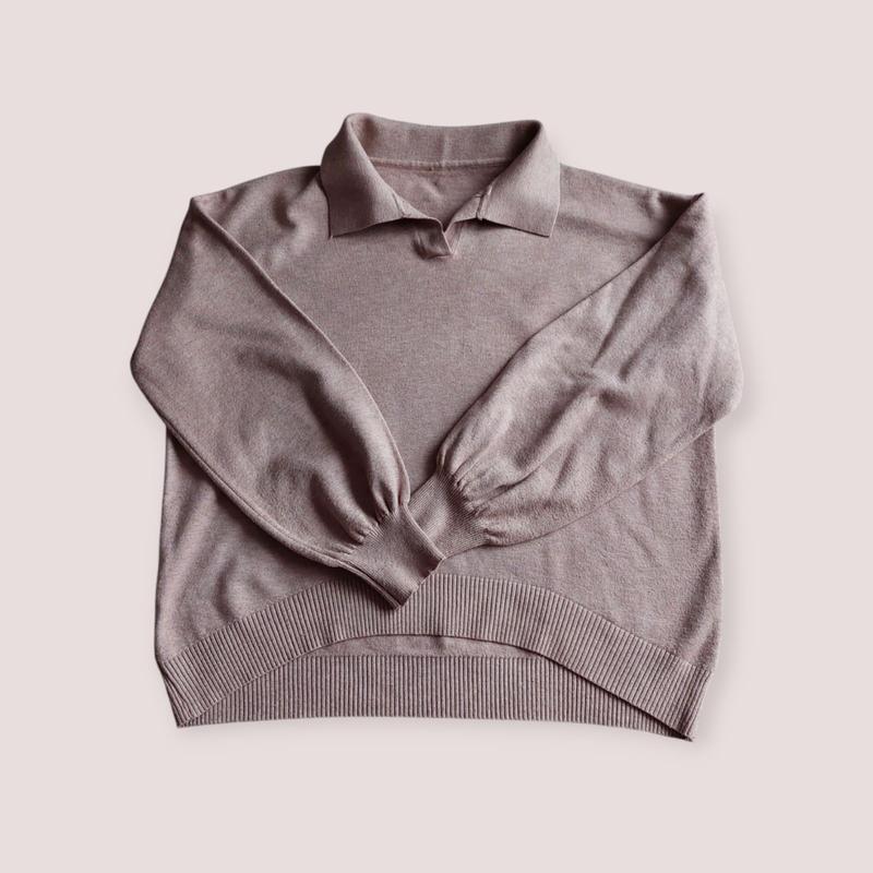 свитер с воротником из приятной ткани. мягкий, не колется. состояние отличное.