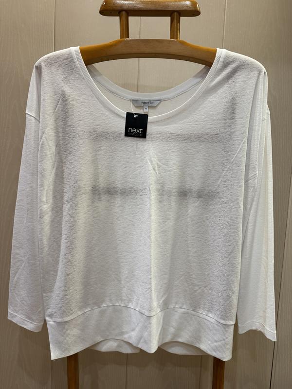 В наявності гарна кофточка фірми NEXT. Розмір вказаний 12. Склад: 100% поліестер... тканина дуже м'яка та приємна до тіла, добре тягнеться. НОГ-крі вільний..55, довжина-64, по спинці трохи довжиною-68, плечі приспущені-60, довжина рукава-47, ширина по низу-53+ще тягнеться.