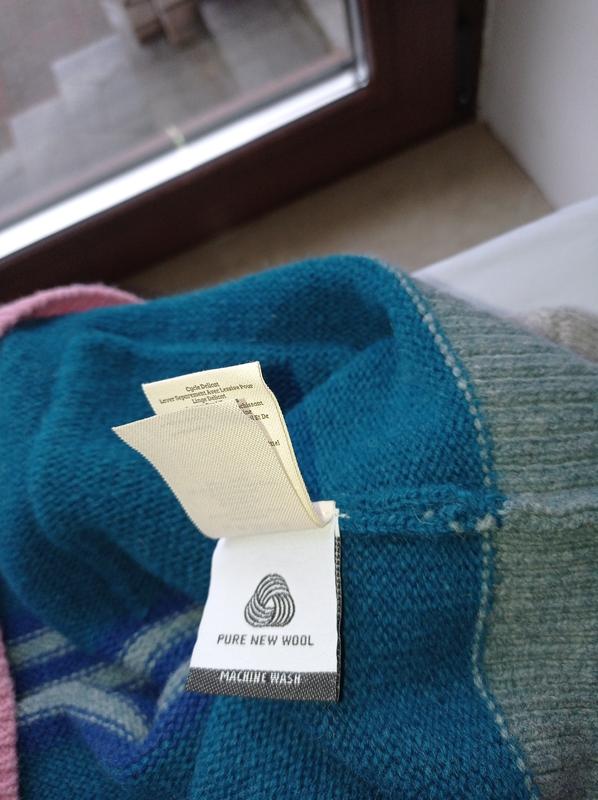 Мягкий приятный на ощупь, теплый свитер точно как на рекламном фото, шерсть хорошего качества, состояние идеально. Пог. 50, рукав 61, длина 70.