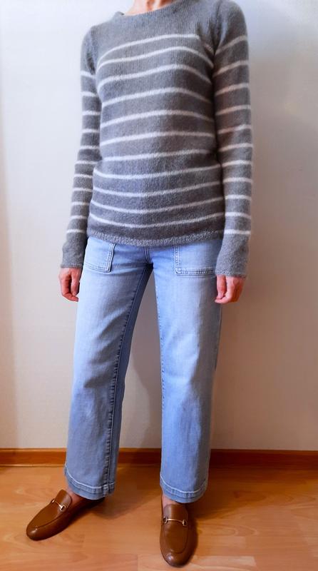 Женский свитер бренда GANT (Швеция) цвет - серый с белыми полосками размер М, но красивее садится на размер S длина по спинке - 55см. длина рукава від горловини- 70 см. полуобхват груди - 45 см. Состав: 67 % - мохер, 33% -полиамид. состояние - идеальное, носилось мало, без катышков.