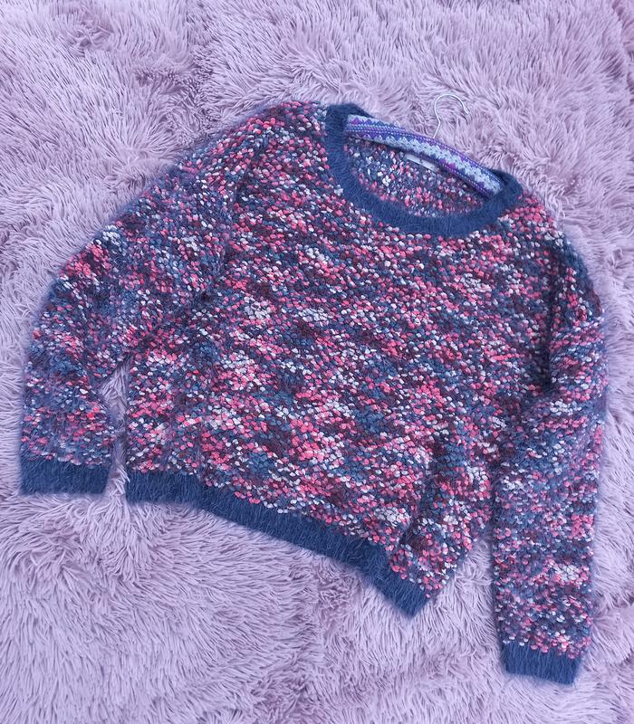 Вязаный свитер-травка, размер 20uk, замеры: длина 58, рукав 60, ПОГ 64-74, ПОТ 60, НИЗ 55-65. 60% полиэстер, 27% нейлон, 13% акрил.