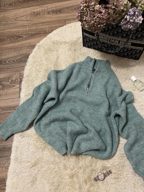 Свитер свободного кроя с воротником стойкой на молнии, размер S, можно М, состав 70%акрил и 30 полиэстер, плотной вязки, длина от плеча 62см., полуобхват груди 62см., низ 58см., длина рукава от горловины 72см. Стан идеален. Все детали в профиле «про меня»!