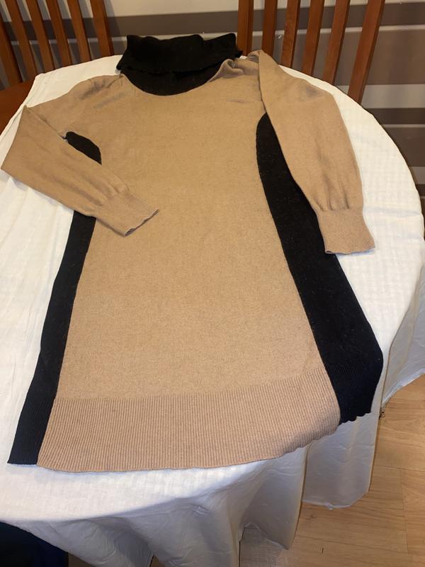 Даже теплое платье-свитер с объемным воротником, средней длины. В отличном состоянии.